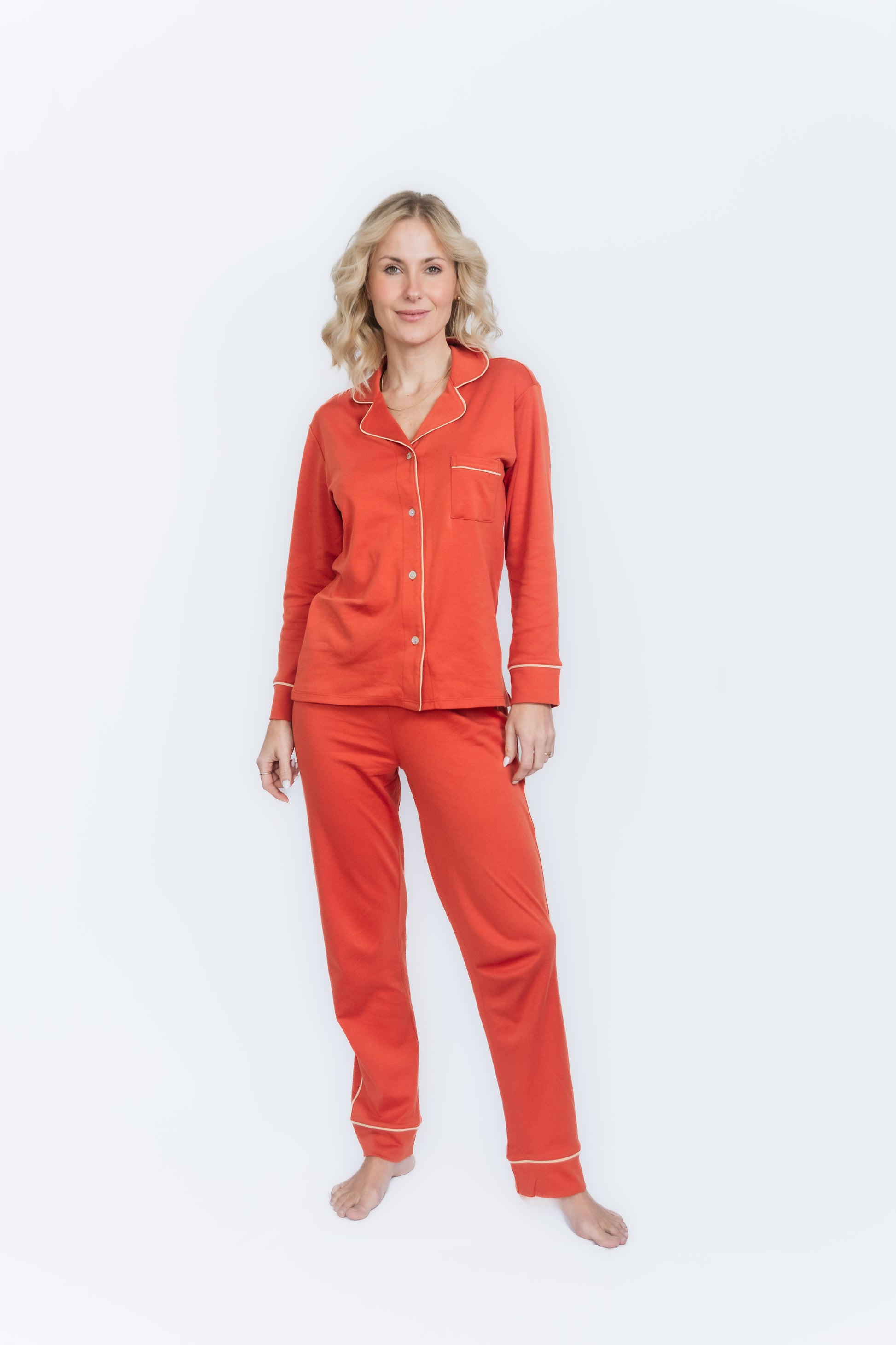Nuestra pijama Paula está diseñada pensando en tu descanso y bienestar. Elaborada con algodón 100% pima, extremadamente suave para darte un descanso reparador o para esos días de relax en casa. Cada detalle ha sido cuidadosamente seleccionado para ofrecerte un descanso de ensueño.